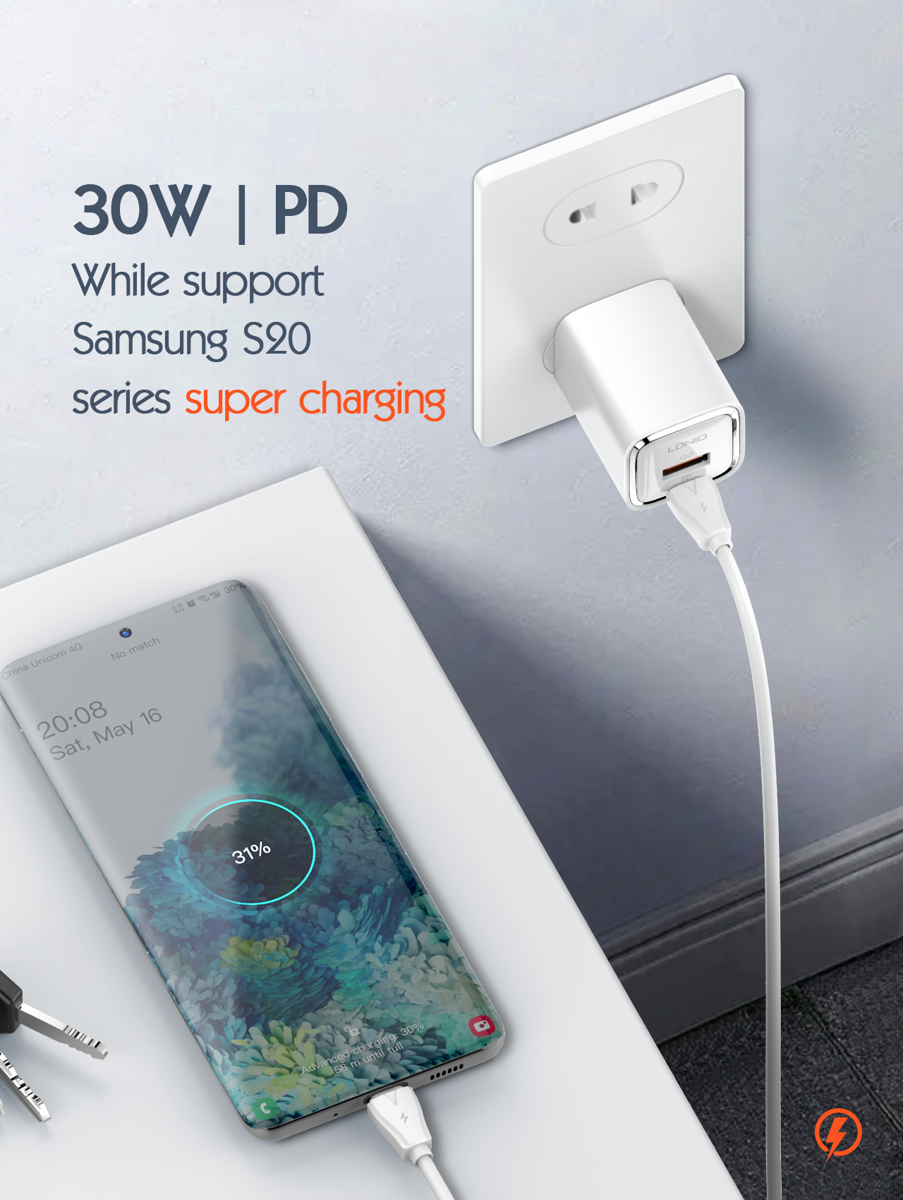 𝐋𝐃𝐍𝐈𝐎 𝟑𝟎𝐖 𝐅𝐚𝐬𝐭 𝐂𝐡𝐚𝐫𝐠𝐞𝐫 𝐰𝐢𝐭𝐡 𝐏𝐃 & 𝐐𝐂 𝐏𝐨𝐫𝐭 -𝐔𝐒 𝐏𝐥𝐮𝐠