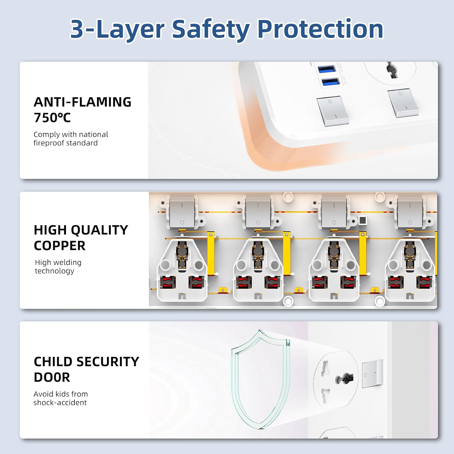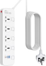 This premium Hoteon extension board features 8 outlets (4 universal sockets + 4 USB ports), allowing you to charge and operate multiple devices simultaneously. With a powerful 2500W capacity and 250V voltage support, it is perfect for home appliances, office equipment, and everyday electronics.