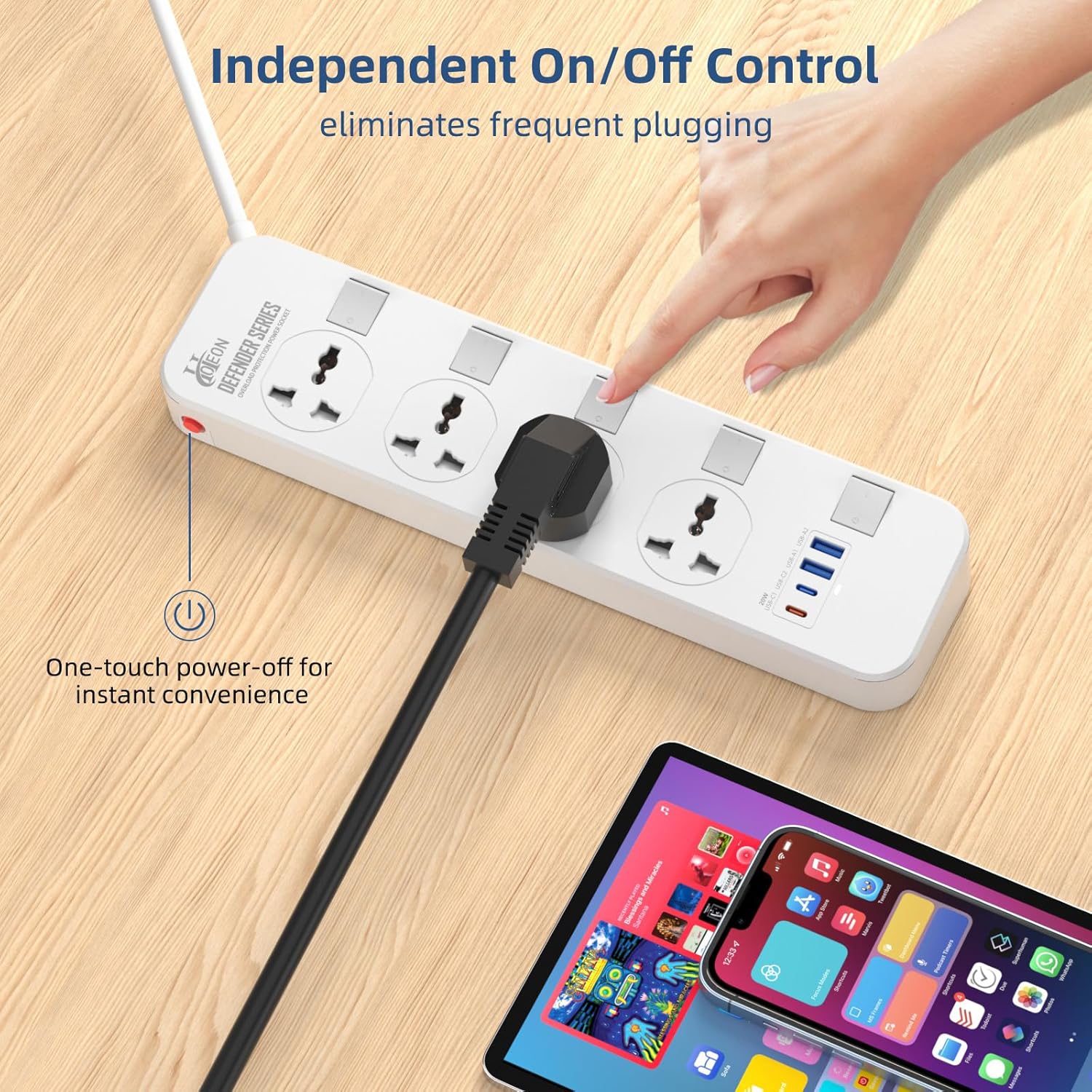 Power up your home or office safely and efficiently with the Hoteon 2500W Extension Board with USB Slots – a high-performance power strip designed for modern electrical needs.
