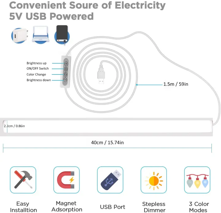 • 【Wide Applicable】Using it in the student dormitory, kitchen as cabinet light, or can be used to replace study lamps, desk lamps, wall lamps etc, and good for movable lighting, temporary lighting. use with desktop computer, tablet, laptop, Mobile charger, car USB port, usb plug; Outdoor use with a power bank