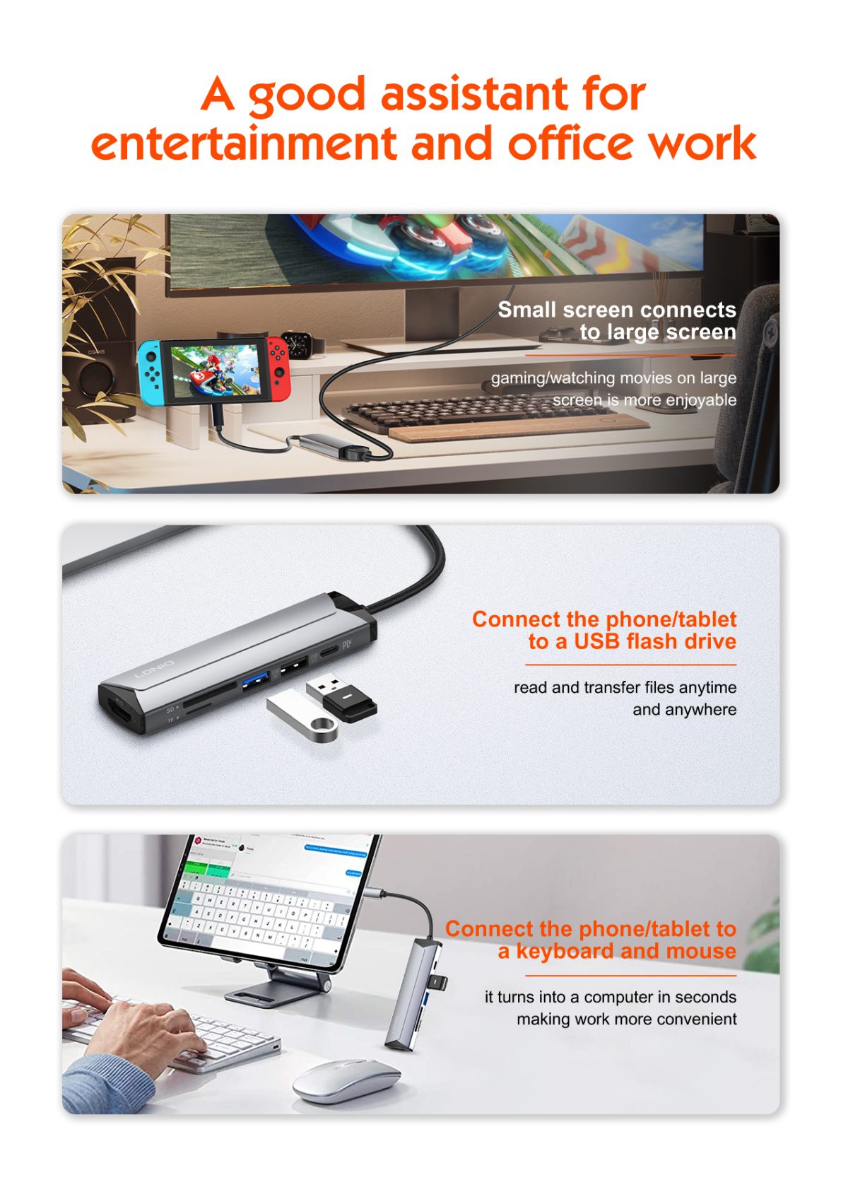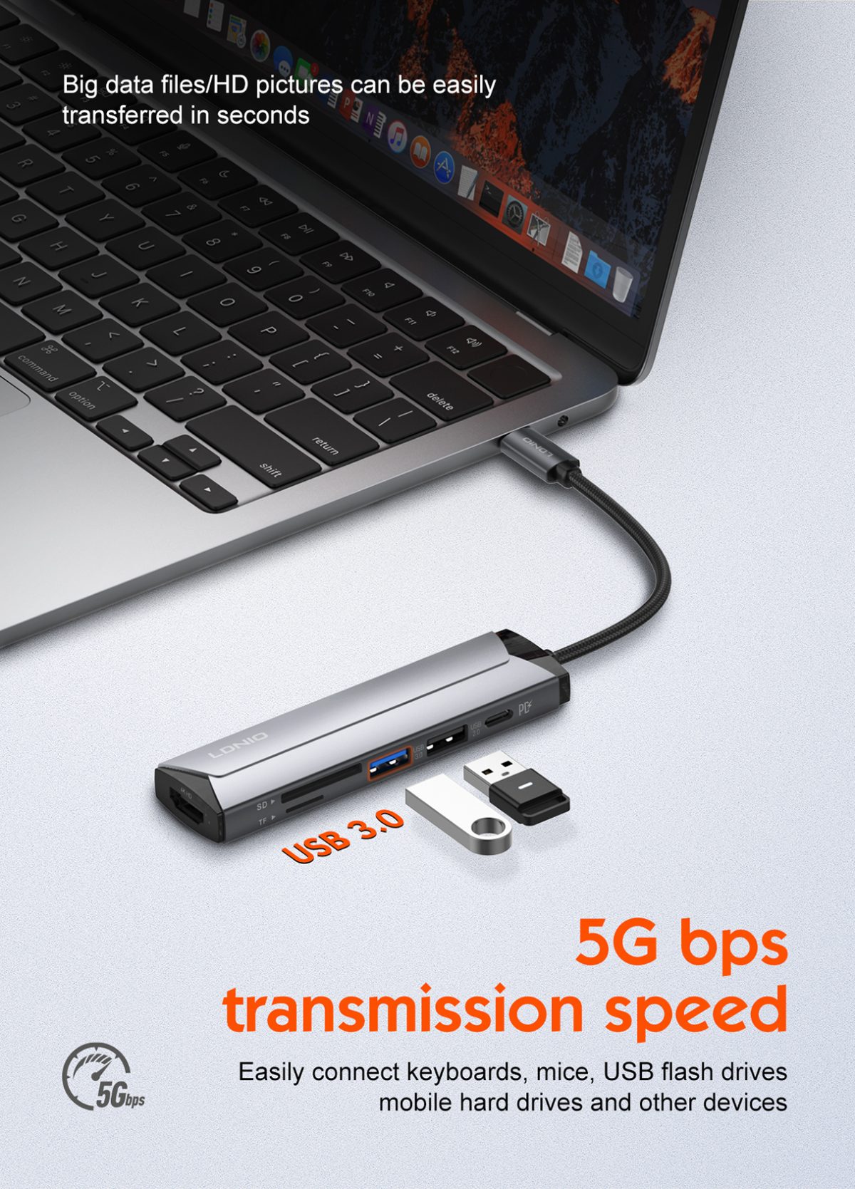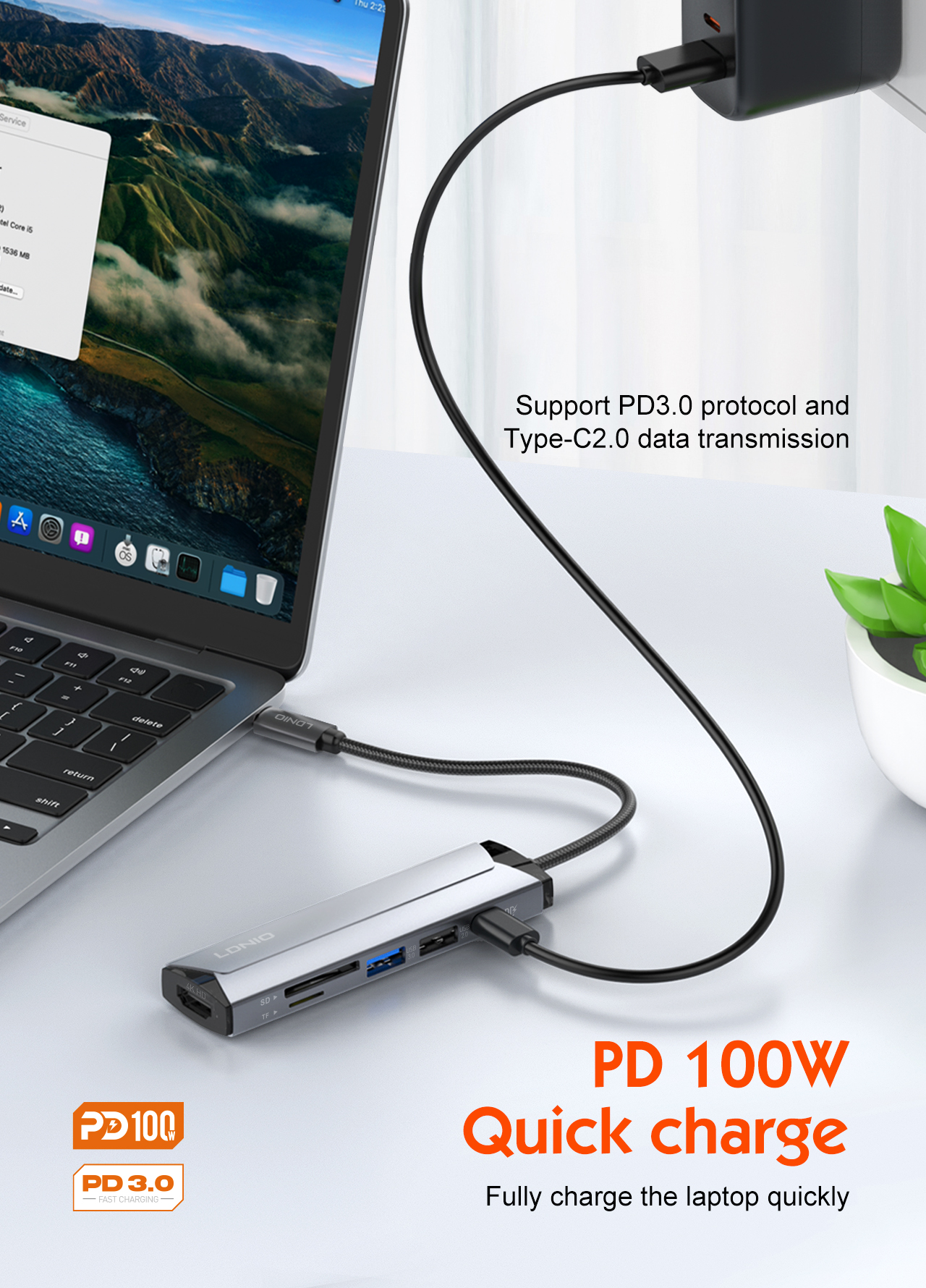 The LDNIO DS-56H PD100W Docking Station is the ultimate tool for professionals and multitaskers looking to streamline their connectivity needs. Designed with a sleek and compact aluminum alloy body, this 5-in-1 docking station offers unmatched versatility with multiple ports for charging, data transfer, and display output. Its powerful PD100W capability ensures rapid charging for high-powered devices like laptops, while its HDMI 4K support provides stunning visuals for your presentations or entertainment. Perfect for mobile devices, laptops, and desktop computers, the Ldnio DS-56H redefines efficiency and productivity with its plug-and-play functionality and compatibility across operating systems.