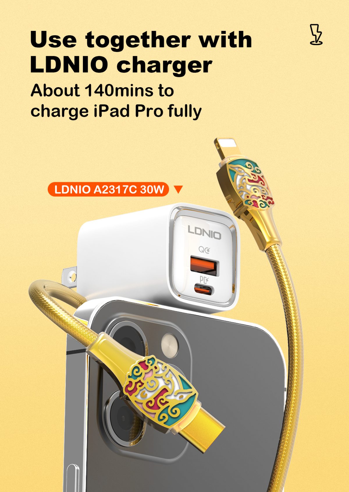 Ldnio LC881I Golden Pd30W Type-C Cable Support Pd30W Fast Charging Data Cable