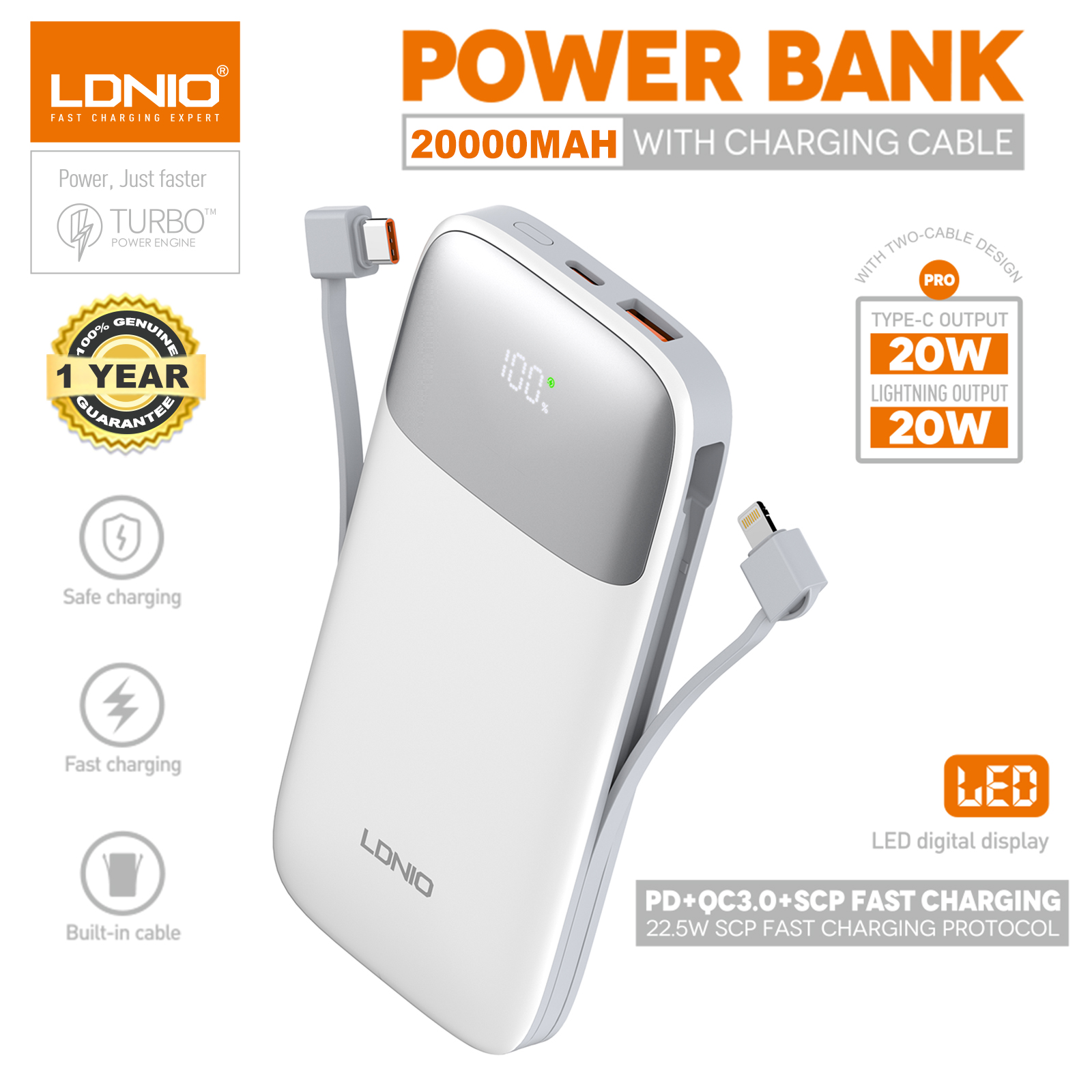 The LDNIO PQ20 is a high-capacity power bank designed to keep your devices charged and ready, no matter where you are. With a sleek design, fast charging capabilities, and advanced safety features, the PQ20 is the ultimate solution for powering up your gadgets on the go.