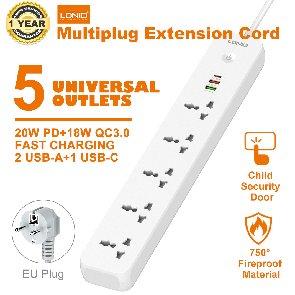 The LDNIO SC5319 features five AC outlets, providing ample space to connect multiple devices simultaneously. Whether you need to power lamps, computers, printers, or other electronic appliances, this extension lead ensures you can keep all your essential devices running without hassle. Its universal socket design accommodates various plug types, making it a versatile option for different regions and devices.