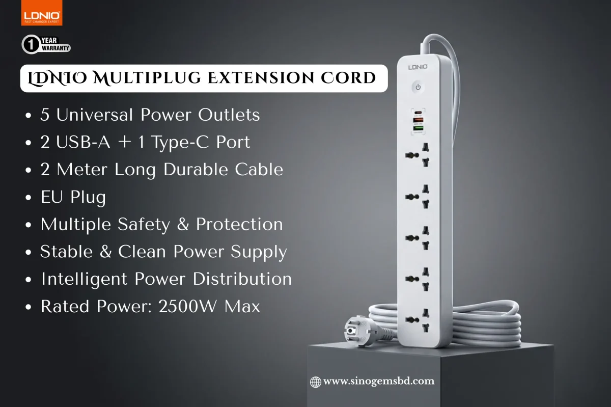 The LDNIO SC5319 is more than just a power strip; it’s a high-capacity power hub designed to streamline your workspace or home entertainment center. By combining high-density AC distribution with universal compatibility, it eliminates the clutter of multiple adapters.