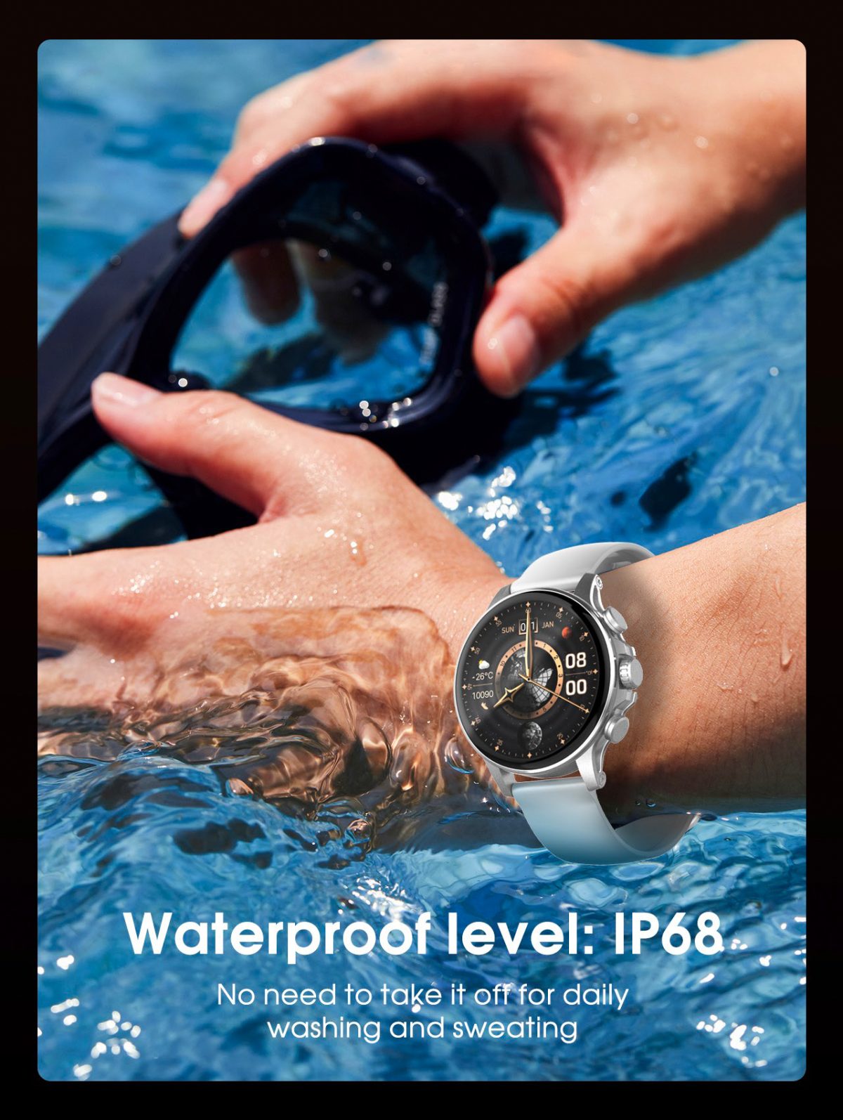 • IP68 Waterproof: Dustproof and water-resistant, perfect for active lifestyles.