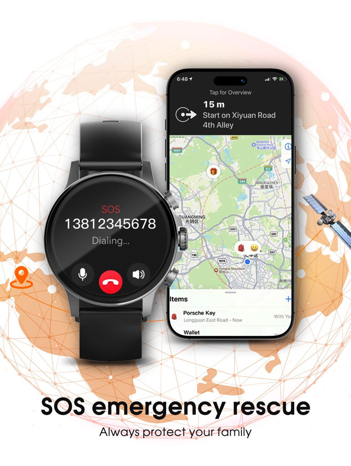 • Additional Functions: Voice communication, notification sync, music control, and customizable watch faces