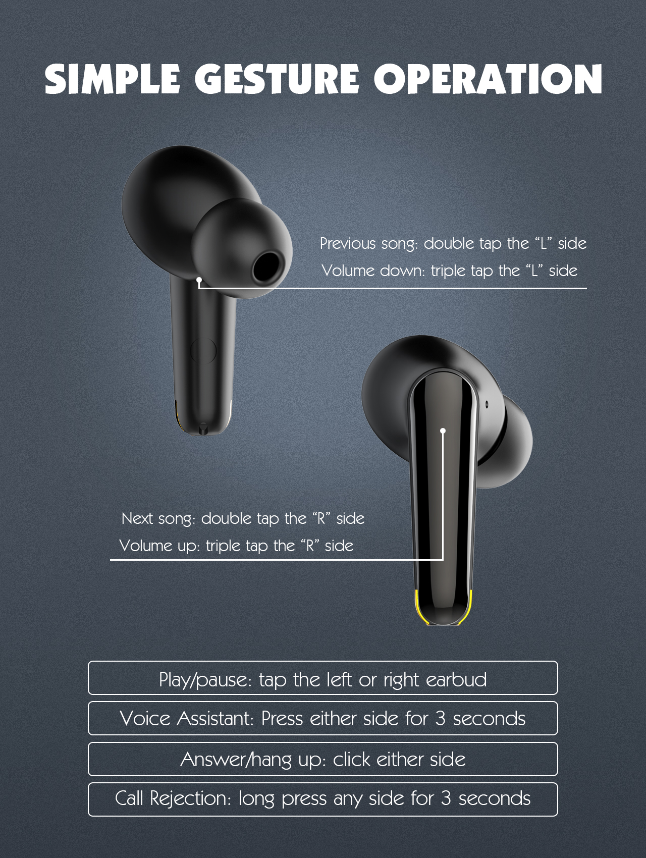 Equipped with Φ10mm speakers, the earbuds produce balanced audio with clear highs and rich bass across a wide 20Hz–20KHz frequency response. With a horn power of 3mW, they deliver crisp sound for music, videos, and calls.