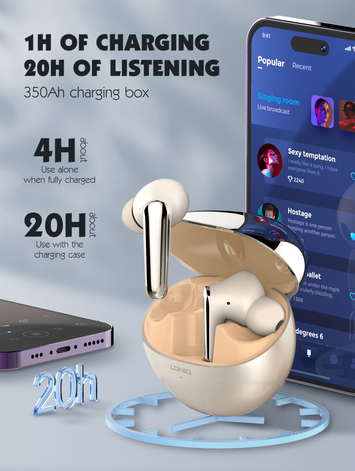 The LDNIO T01 True Wireless Earbuds are designed to deliver stable connectivity, clear sound, and long-lasting performance for everyday use.