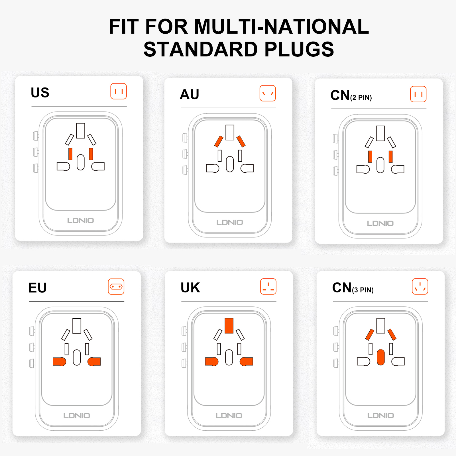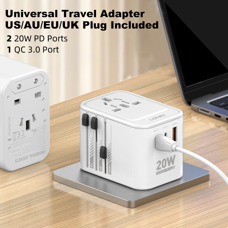 The LDNIO Z9 features interchangeable plug types, making it compatible in over 150 countries worldwide. Whether you’re traveling across Europe, the UK, the US, Asia, or beyond, you won’t need to carry multiple adapters — this one device covers it all.