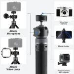 2-in-1 Versatility: Transition seamlessly from a handheld vlog stick (for selfies and walking shots) to a stationary tabletop tripod (for interviews or time-lapses).