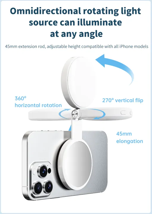 4.5cm Extension Arm: Provides extra clearance to ensure the light isn’t blocked by bulky phone cases or lenses.