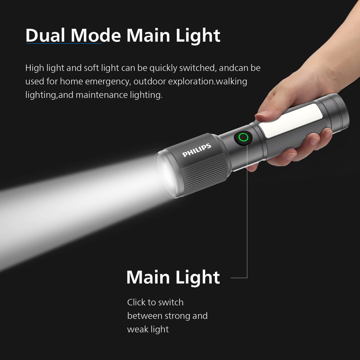 Easily switch between a focused spotlight for long-range visibility or a wide floodlight for broader coverage.