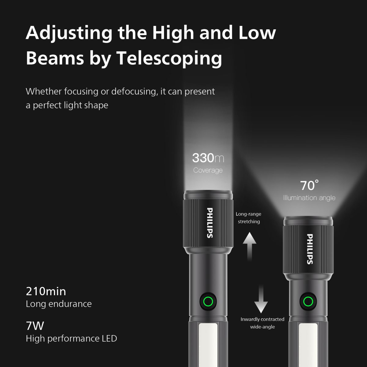 Experience powerful illumination in a compact and durable design. This high-performance flashlight delivers 330 lumens of bright, clear light with an impressive beam distance of up to 325 meters, making it perfect for outdoor adventures, emergency situations, security use, and daily tasks.