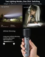 Built with a compact structure (47.2 × 30.8 × 170.8mm), this flashlight easily fits in your palm, pocket, backpack, or car compartment. Its lightweight and ergonomic body ensures a comfortable grip for extended use.