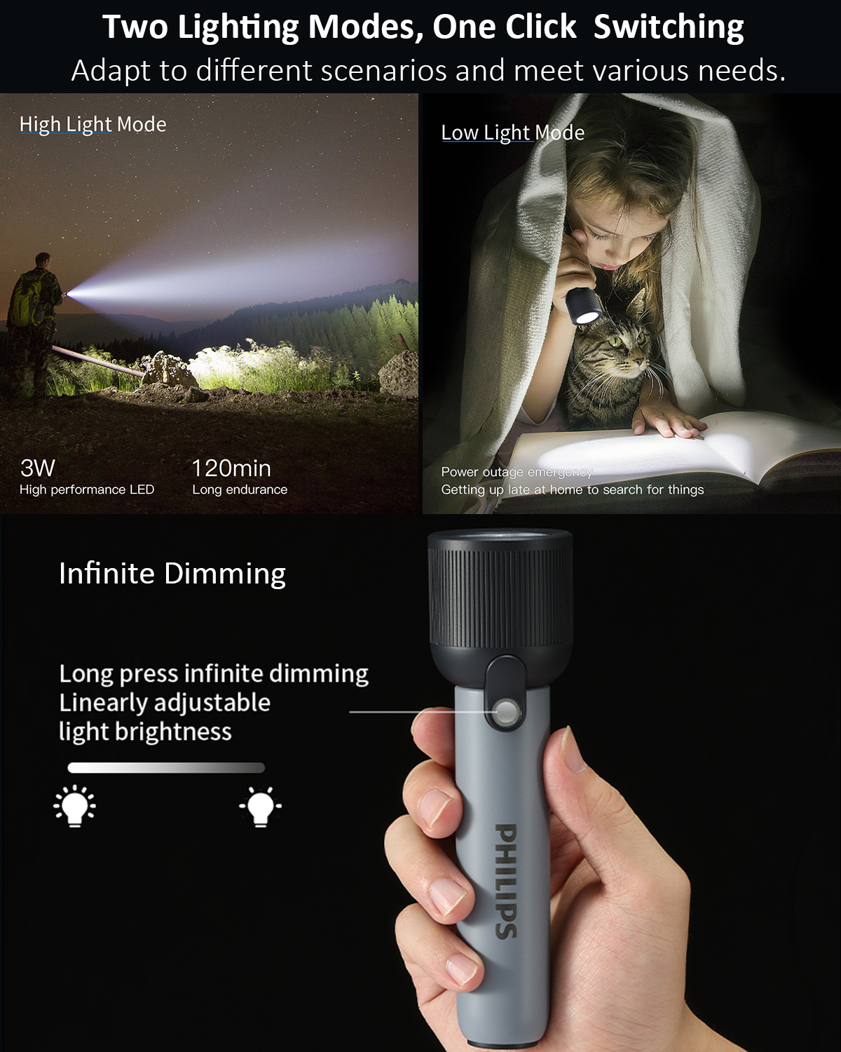 Infinite Dimming Mode – Adjustable brightness to your preference