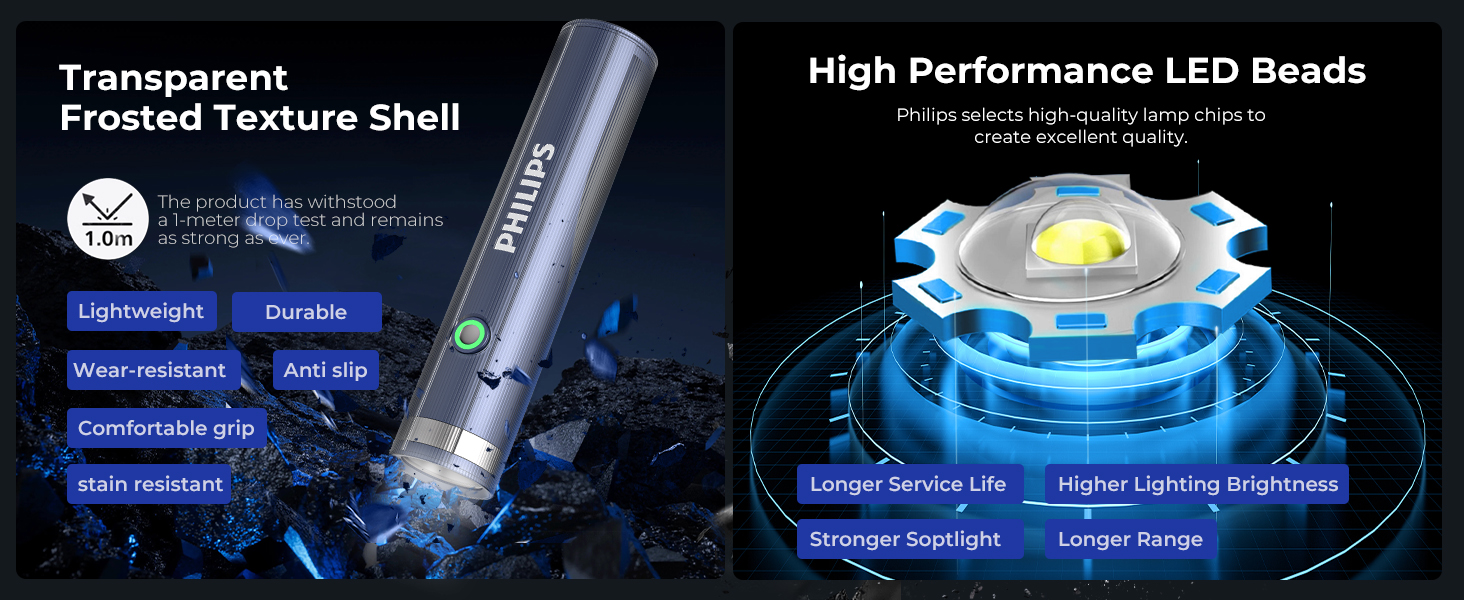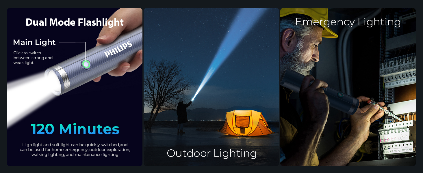 PHILIPS ABS Multi-Functional Rechargeable Flashlight & Portable Light – 400/350Lumens, 400m/150m Beam Range SFL1188