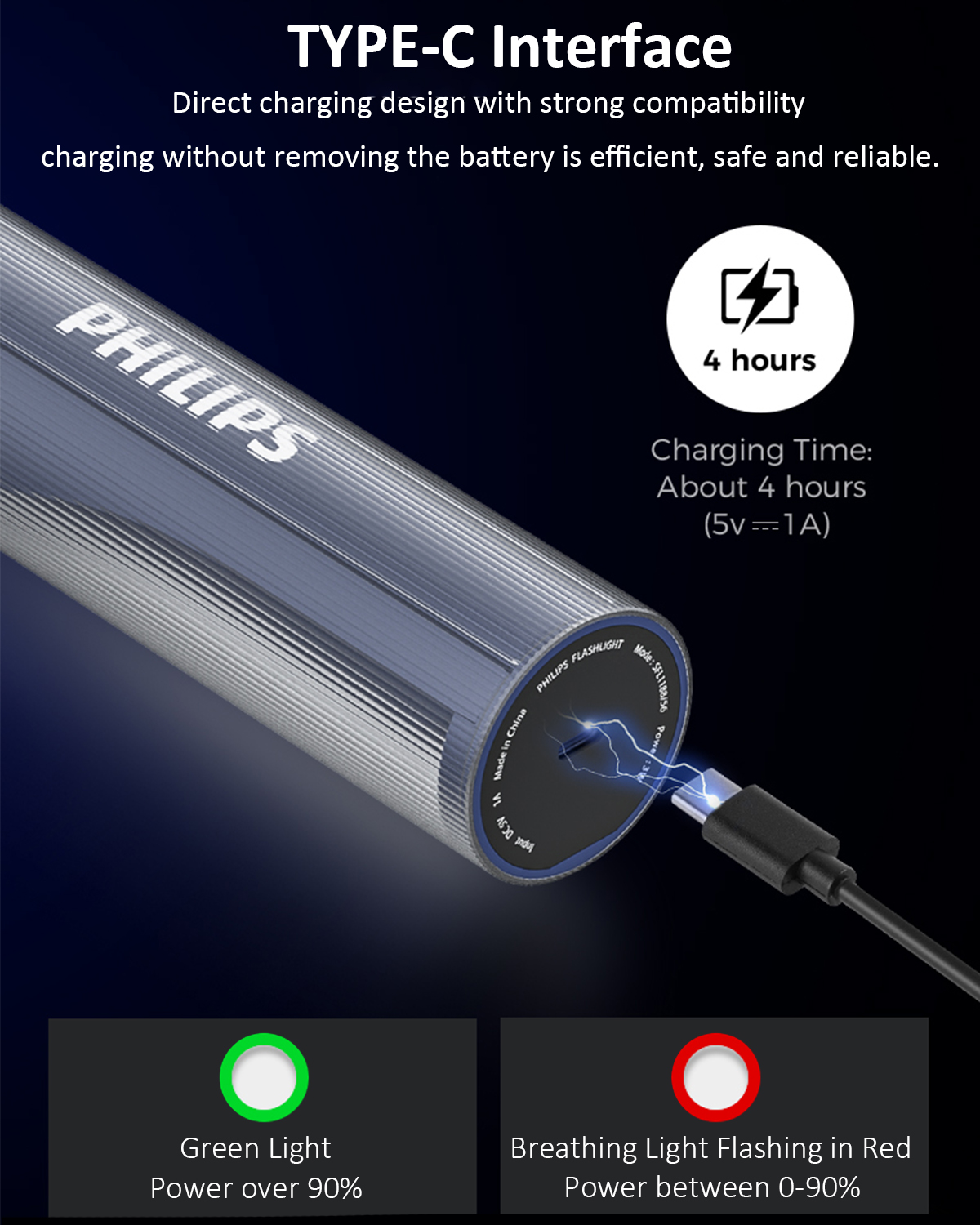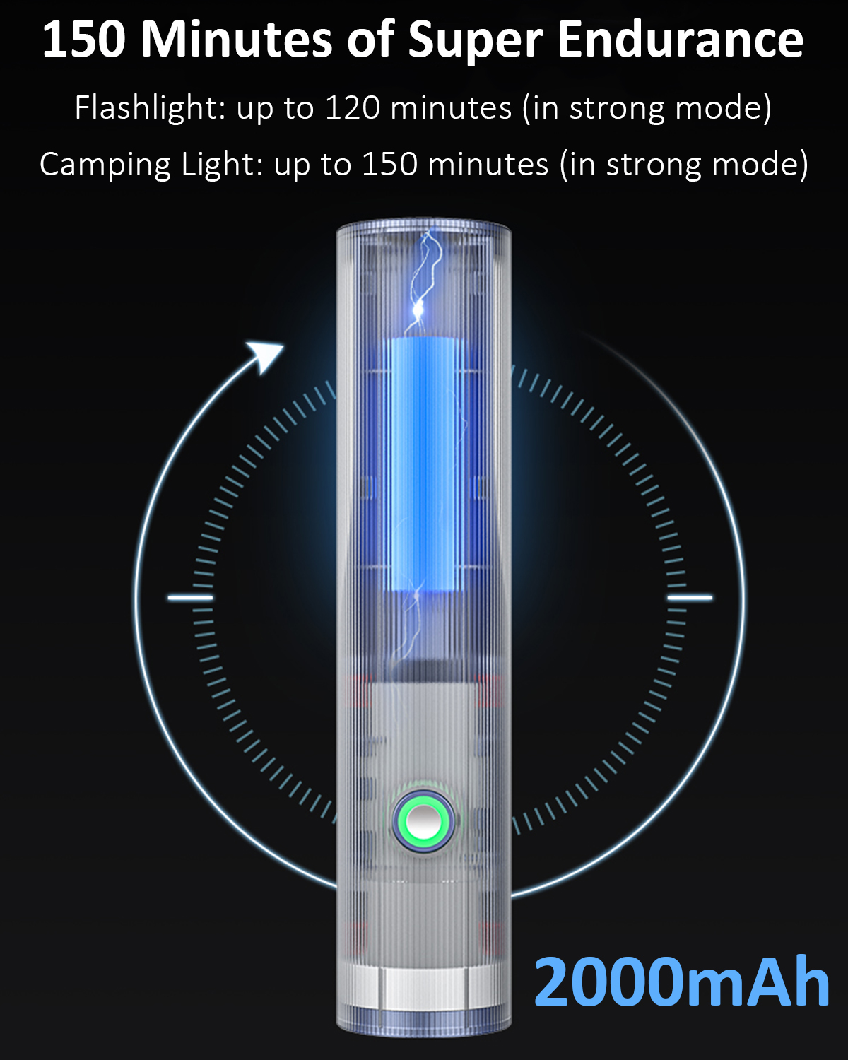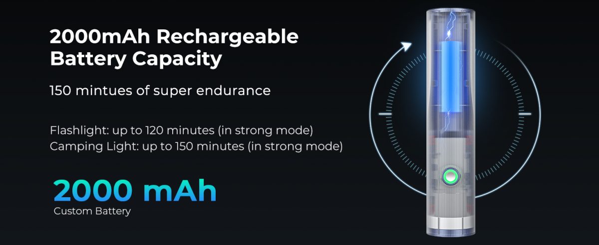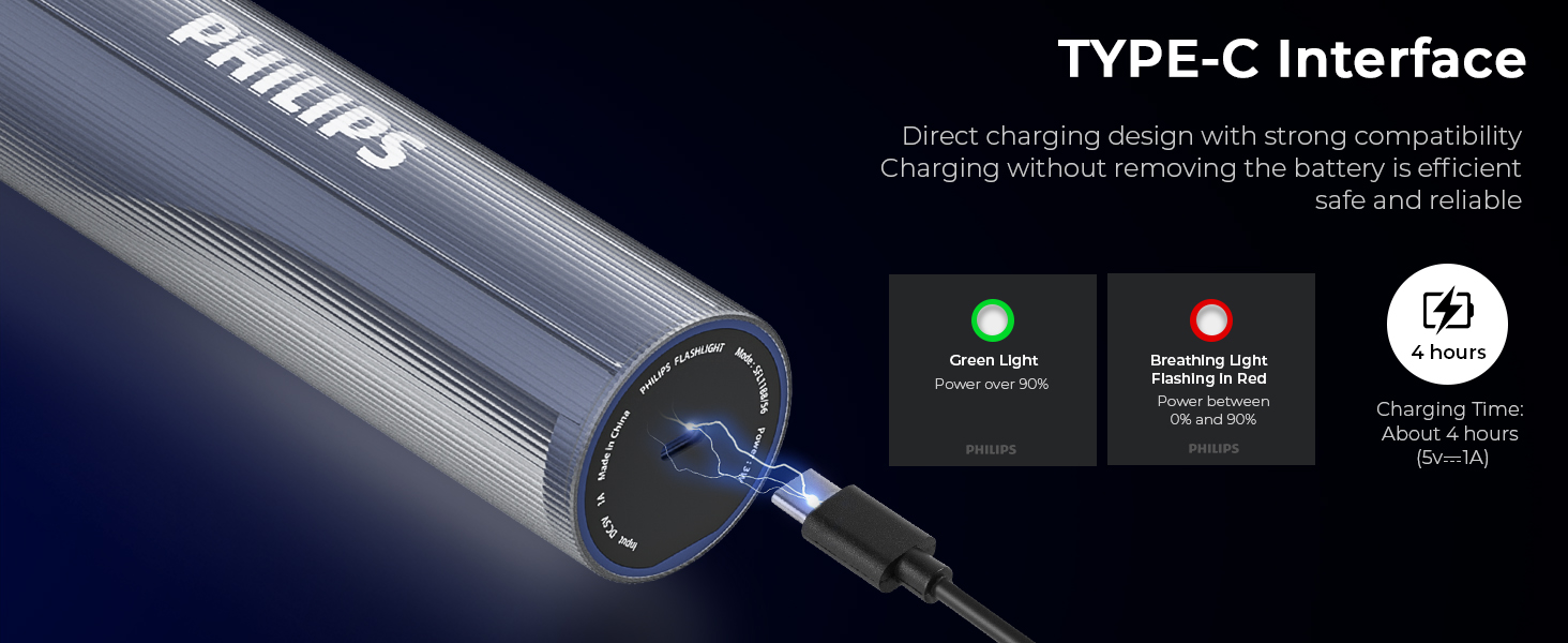 Equipped with high-quality LED lamp chips, this flashlight produces up to 400 lumens of clear, focused illumination. It offers excellent visibility for indoor and outdoor use while maintaining energy efficiency and long service life.