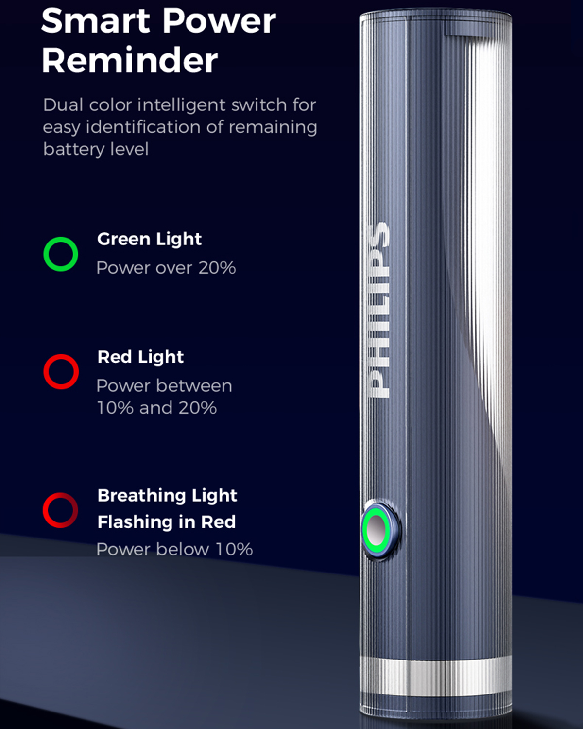 Stay aware of your power status with built-in indicators:
