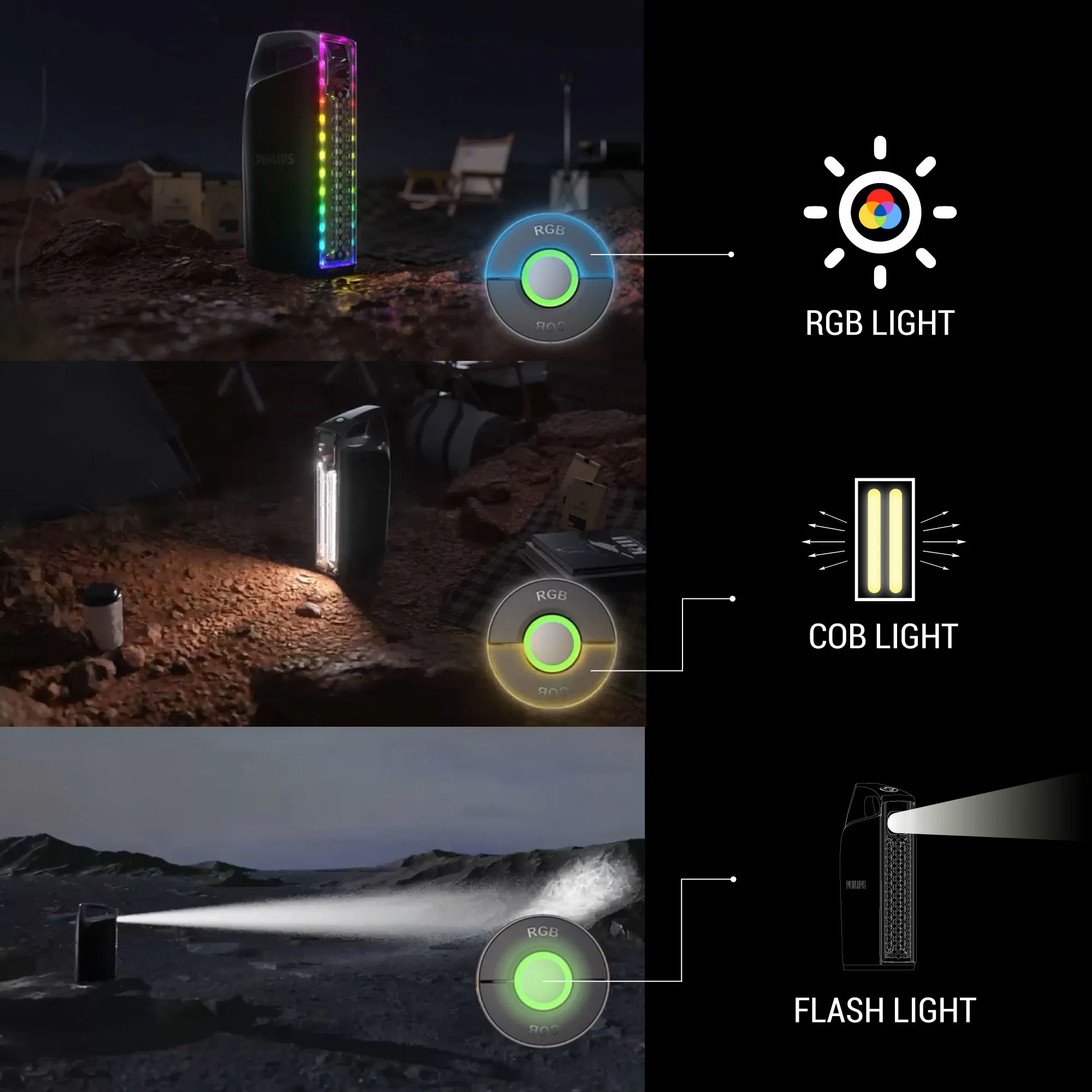 The SFL3402/56 is a powerful and versatile lighting solution designed for camping, outdoor adventures, emergency backup, and even ambient lighting. With high brightness, RGB color options, and long battery life, it’s the perfect companion for both practical and decorative use.