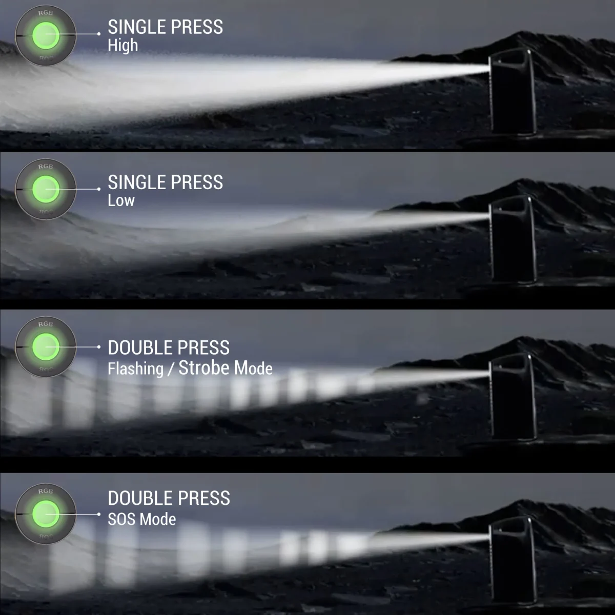 Front Flashlight Mode – Focused beam for long-distance lighting