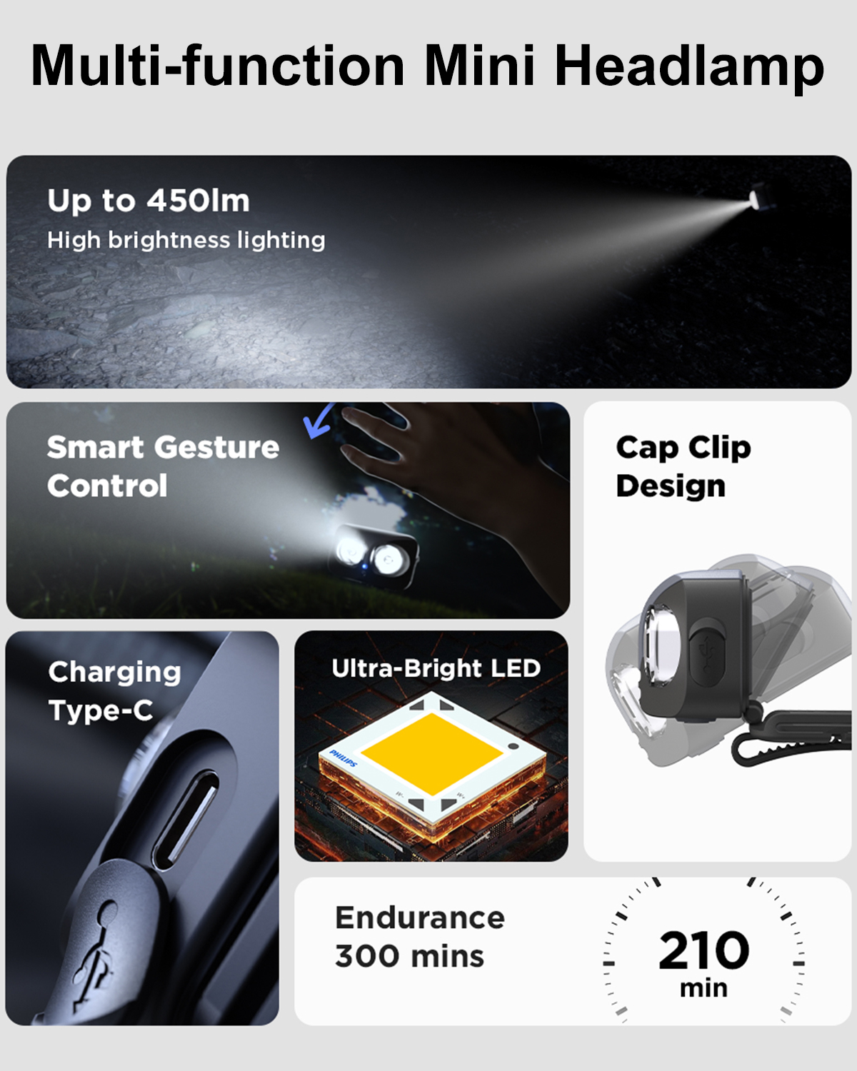 PHILIPS Multi-Functional LED Rechargeable Headlight – 450Lumens, 100m Beam Range, 1000mAh SFL3342RH